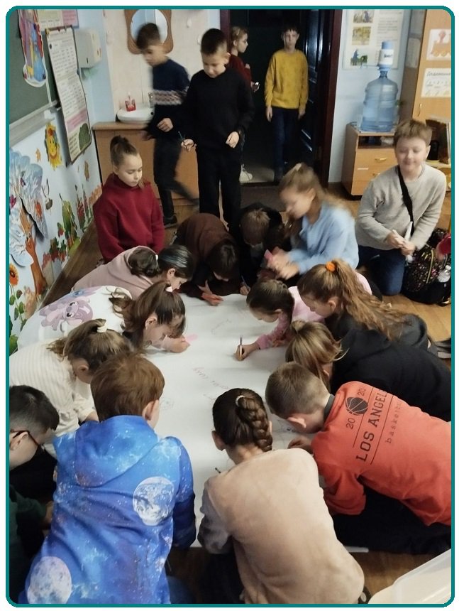 У Міжнародний день людей з обмеженими фізичними можливостями в початковій школі відбулася акція «Слова мають силу», де учні створили спільний плакат із добрими словами та побажаннями для однокласників, демонструючи підтримку та чуйність.