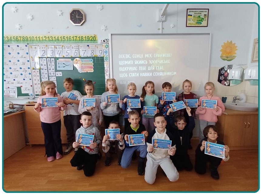 В останні дні лютого учні перших класів узяли активну участь у заходах бібліотечного тижня. Діти ознайомилися з правилами читача та користування книгою, виготовляли власні закладки, відвідали бібліотечний урок та шкільну бібліотеку. Учні брали участь у конкурсах читців, вікторинах «З якої казки?», а також оглядах і виставках книжок. Найактивніші учасники отримали сертифікати «Суперчитача/Суперчитачки». Заходи сприяли заохоченню до читання, розвитку творчості та інтересу дітей до світу книги. Продовжуємо зацікавлювати дітей у читанні та надихати їх на нові книжкові відкриття.