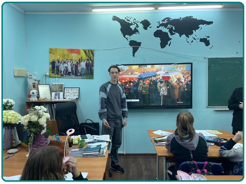 21 листопада відзначаємо День гідності і свободи - день, який не тільки змінив хід української історії, а й значно вплинув на життя українців. Він нагадує нам про силу єдності, про ціну свободи і про те, що пам'ять про такі події повинна жити в кожному поколінні. Старшокласники зібралися в актовому залі, щоб побачити ретроспективу історичних подій, яку підготували учні 10-а та 11-в класів. Учнівське самоврядування провели заняття в початкових класах, розповідаючи найменшим про трагічні події, які ми згадуємо в цей день.