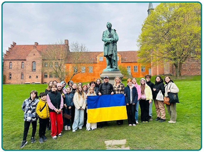 Учні Скандинавського ліцею мали неймовірну нагоду відвідати Королівство Данії — країну казок, щирості та натхнення. І ця поїздка стала не просто мандрівкою, а справжньою історією про дружбу, відкриття і віру в майбутнє. Цей шлях розпочався з чарівного міста Оденсе, де діти із захопленням поринули у світ казок у музеї Ганса Крістіана Андерсена. Особливо цінною стала зустріч із представниками Спілки українців в Оденсе, які провели для школярів теплу і змістовну екскурсію містом — з турботою, увагою і щирою підтримкою. Копенгаген відкрився у всій своїй красі: оглядова екскурсія автобусом, прогулянка човником каналами, величний замок Розенборг та знайомство з головними перлинами столиці Данії — усе це подарувало дітям справжнє захоплення і нові враження.