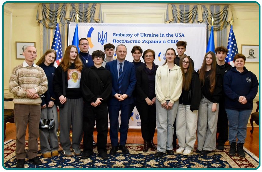 Також учні Скандинавського ліцею відвідали посольство України в США, де їх зустріла радник з питань політики та публічної дипломатії Катерина Смаглій, яка провела невелику екскурсію по посольству, розповівши історію будівлі. Після інформативного екскурсу ліцеїсти зустрілися з першим заступником посла — Денисом Сєніком, із яким група провела цікаву дискусію щодо зовнішньої політики України, а також питань, які цікавили нашу делегацію.