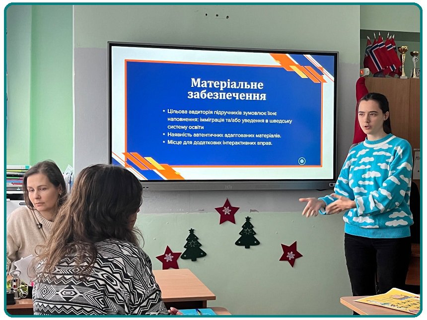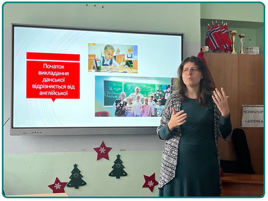 Під час семінару було проведено: • аналіз труднощів, з якими стикаються учні під час опанування скандинавських мов; • обговорення відмінностей між скандинавськими мовами; • демонстрація практичних вправ, інтерактивних методик та автентичних ресурсів; • обмін успішними кейсами та обговорення викликів у навчальній практиці співпраці зі школами-партнерами з Данії, Норвегії, Швеції та Фінляндії.