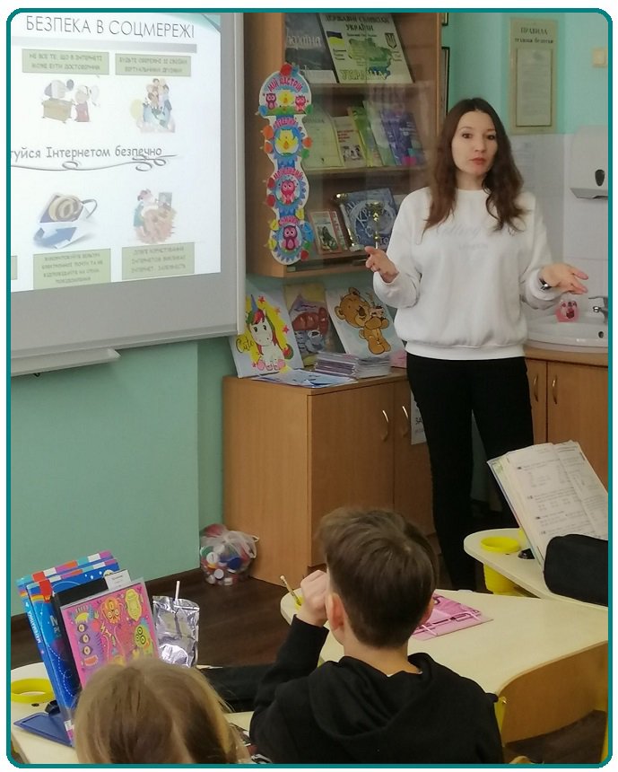 16–20 лютого психолого-педагогічна служба ліцею проводила Тиждень безпечного спілкування в інтернеті, протягом якого для учнів початкової та середньої школи було організовано інформаційно- просвітницькі заходи, спрямовані на формування відповідальної та безпечної поведінки в онлайн-просторі. Так, для учнів 4-х класів відбувся тренінг із переглядом та обговоренням відео «Безпека в соцмережах. Правила безпечного користування інтернетом». Під час заняття діти ознайомилися з основними правилами онлайн-безпеки, вчилися розпізнавати потенційні загрози в мережі та дізналися, як діяти у випадку небезпечних ситуацій.