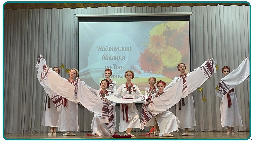 День вчителя — свято гідних, сильних, мудрих та відважних людей. Вчитель — це не просто складна та важлива професія, це справжня місія. Бо саме вчителі роблять нашу країну сучасною, сильною та розвиненою, а українців — гідними, розумними, навченими, людяними. Чудовий концерт-привітання зі святом подарували дорогим вчителям наші талановиті учні! Дякуємо учнівському самоврядуванню, Театру танцю «Шарм», хору «Веселі нотки», танцювально-спортивній студії «Ренесанс-Еліт» за яскраві виступи та приємні емоції!