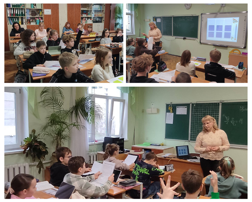 На своїх уроках використовую інновації, інтерактивну дошку, геометричні програми (GeoGebra), тести на платформах (Classtime, Google Forms; На урок), також на уроках застосовую тематичні презентації, відеофрагменти, симулятори для пояснення нового матеріалу та перевірки засвоєння знань.